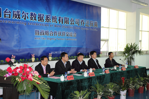 2012年11月1日,煙臺威爾數(shù)據(jù)系統(tǒng)有限公司喬遷慶典在企業(yè)新址(煙臺盛泉工業(yè)園明達西路12號)隆重舉行。出席慶典儀式的有煙臺市萊山區(qū)副區(qū)長王嗣強、煙臺市經(jīng)信委主任叢健、萊山經(jīng)濟開發(fā)區(qū)工委書記王春雷等二十多位市政領(lǐng)導(dǎo)。同時,來自全國各地的50多位經(jīng)銷商和供應(yīng)商代表以及威爾全體員工共同參與到慶典活動中。