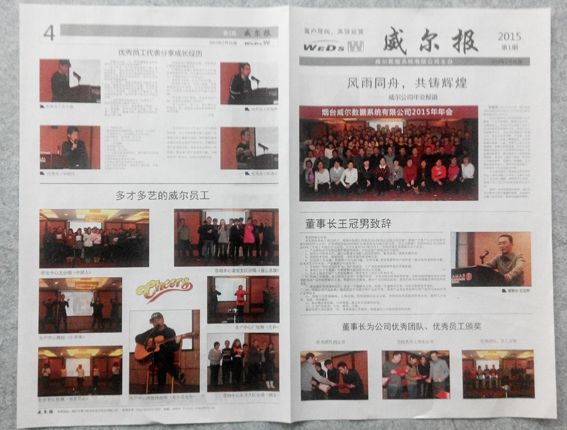 2015年3月7日,威爾公司企業(yè)報刊“威爾報”首期正式發(fā)表。首期“威爾報”是對威爾公司2015年年會活動進(jìn)行總結(jié)性報道。