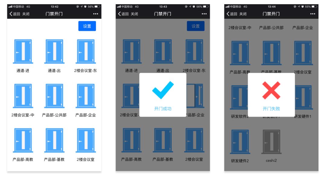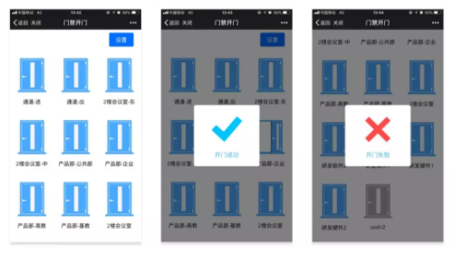 客戶端的門禁開門功能會顯示本員工權(quán)限下的所有門禁,點擊門禁即可完成開門操作,使得員工完全擺脫員工卡的束縛,進(jìn)一步提升員工幸福感。