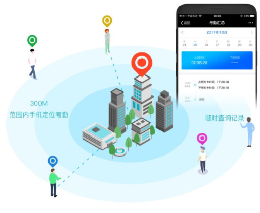 在公司房源300米的范圍內(nèi)即可進(jìn)行手機定位考勤,不必走遠(yuǎn)路尋找考勤終端進(jìn)行考勤,節(jié)約了員工的時間,提升了員工幸福感,同時公司的管理員定位內(nèi)勤范圍,員工進(jìn)入考勤區(qū)域允許打卡,員工手機打卡,隨時查詢記錄,外出人員可以進(jìn)行手機打卡,公司人員所在位置清晰,管理有序。