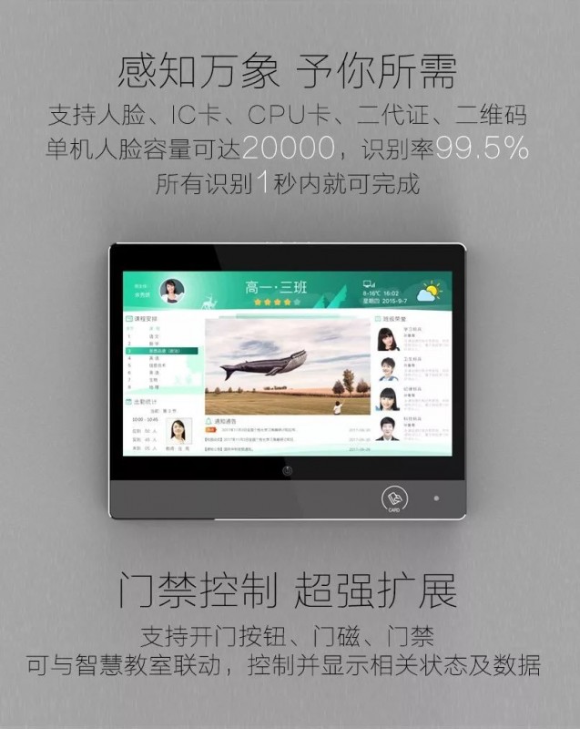支持開門按鈕、門磁、門禁,可與智慧教室聯(lián)動,控制并顯示相關狀態(tài)及數(shù)據(jù)。
