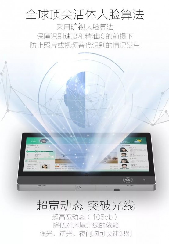 采用曠視人臉算法,保障識別速度和精度,防止照片或視頻替代識。