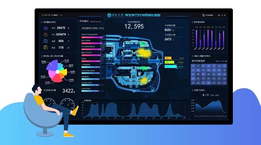 針對(duì)分析的數(shù)據(jù)提供可視化展示,向校方展示上課情況和系統(tǒng)運(yùn)行情況,各部門獲得各自的服務(wù)內(nèi)容。