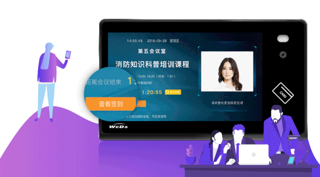可通過系統(tǒng)和班牌進(jìn)行多種形式的會(huì)議預(yù)約操作,會(huì)議開始后參會(huì)人員可通過刷卡、二維碼和人臉等多種方式簽到。