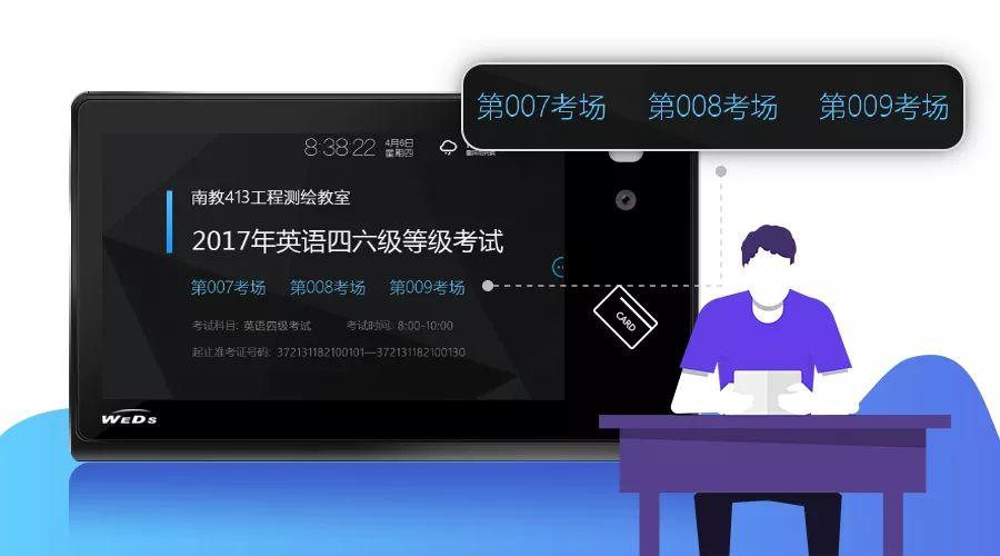 系統(tǒng)根據(jù)排考信息,在考試周的時(shí)候,智能終端自動(dòng)轉(zhuǎn)換為展示考場(chǎng)信息,系統(tǒng)支持一教室多考場(chǎng)設(shè)置,除考場(chǎng)之外還可展示考務(wù)辦公室、試卷分發(fā)室等其余信息。