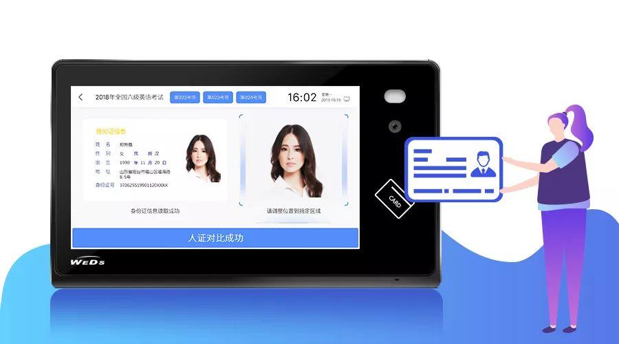 系統(tǒng)以人臉特征和第二代身份證(選配)為主要識(shí)別介質(zhì),并將兩者結(jié)合,實(shí)現(xiàn)人證考三方面信息合一驗(yàn)。