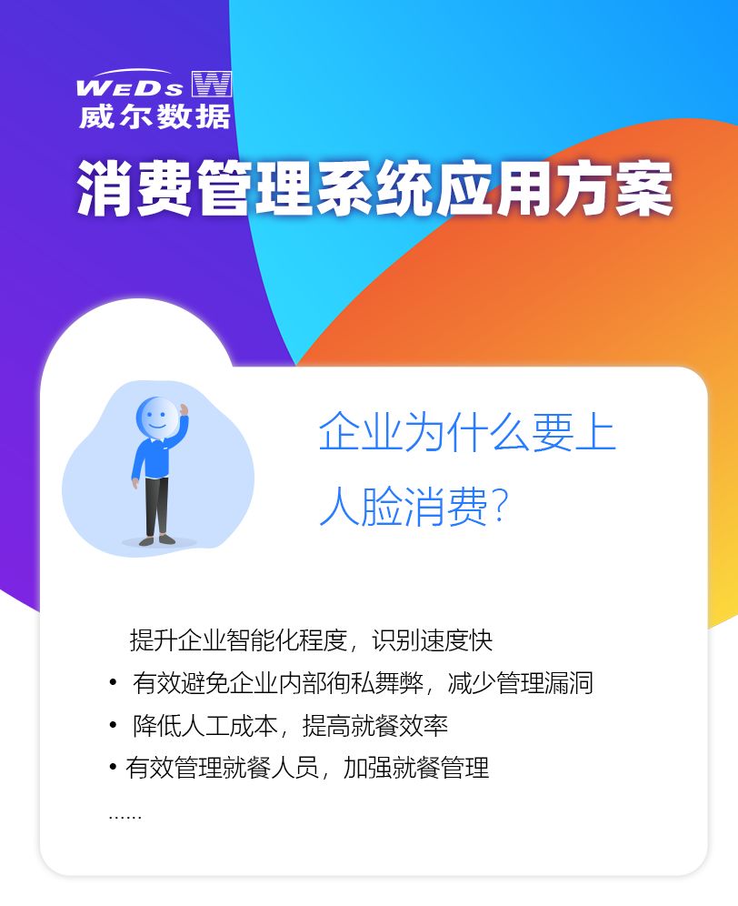 威爾消費管理系統(tǒng)主要是指員工在餐廳就餐、指定場所消費、充值等場景下,通過卡、二維碼、指紋、人臉識別進行身份驗證,對相應(yīng)的關(guān)聯(lián)賬戶信息進行扣費、充值的系統(tǒng)。