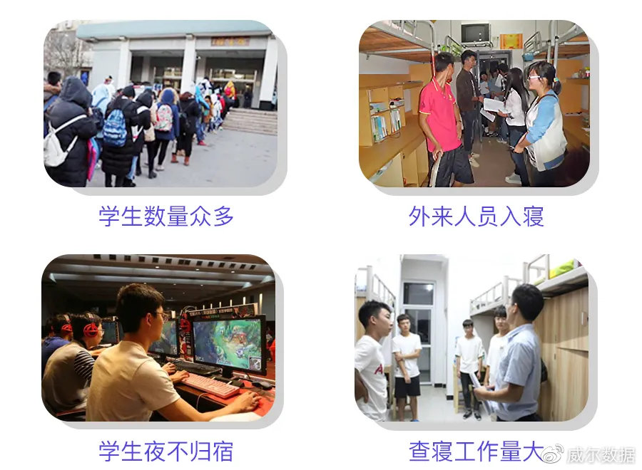 威爾高校宿舍進(jìn)出管理解決方案,針對高校存在的學(xué)生數(shù)量多、外來人員易入寢、學(xué)生串寢不歸寢、人員分寢及鑰匙分配繁復(fù)、查寢工作量大等問題,提供智能化的人員身份及權(quán)限識別,有效降低校方工作壓力,為學(xué)生筑起宿舍安全的堡壘。
