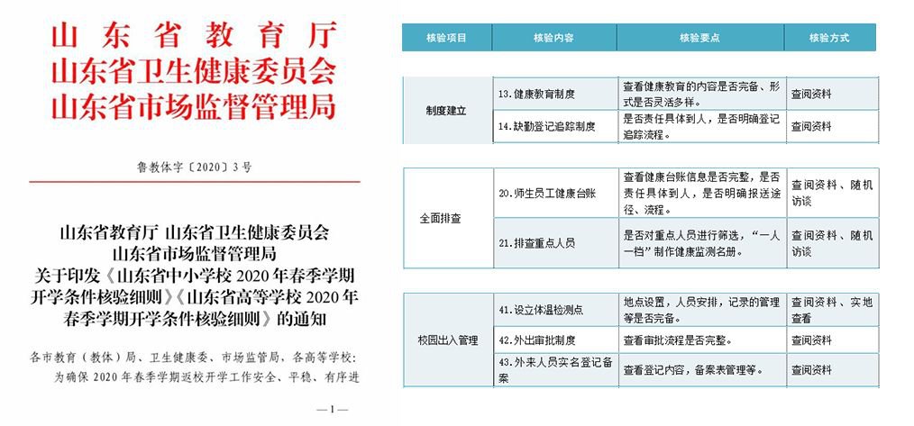 為確保防疫期間學(xué)生安全有序返校、復(fù)學(xué),山東三部門針對中小學(xué)校、高校發(fā)布“最嚴(yán)”開學(xué)條件,檢驗(yàn)細(xì)則中有一項(xiàng)結(jié)果為“否”則為不合格!檢驗(yàn)不合格的學(xué)校,須在5日內(nèi)完成整改;5日后,整改不到位或不按要求整改的,不得安排開學(xué)。