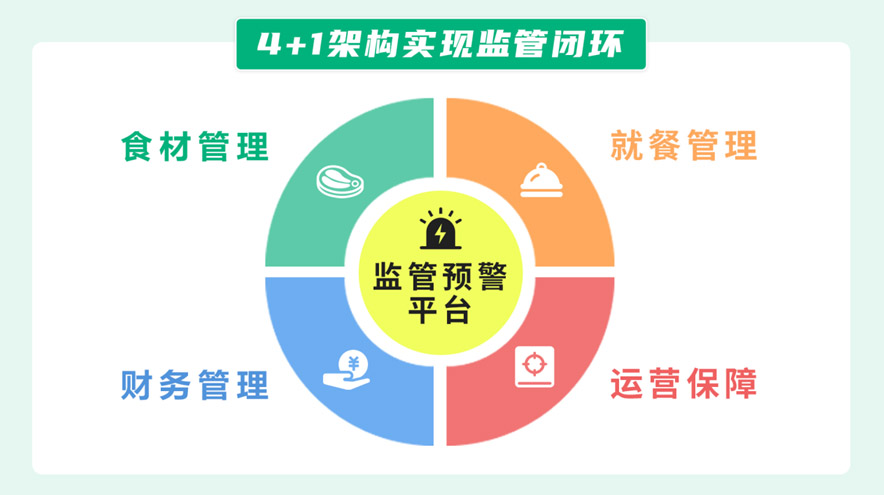 而落地這一格局的關(guān)鍵,在于織就“一張網(wǎng)”——威爾數(shù)據(jù)中小學(xué)校食堂智慧管理系統(tǒng)正是針對這些痛點而設(shè)計,其"4+1"系統(tǒng)架構(gòu)為破解這些難題提供了技術(shù)支撐。該系統(tǒng)的食材管理、就餐管理、財務(wù)管理和運營保障四個子系統(tǒng),與監(jiān)管預(yù)警平臺共同構(gòu)成了完整的監(jiān)管閉環(huán)。食材管理系統(tǒng)確保采購流程規(guī)范透明,就餐管理系統(tǒng)實現(xiàn)消費數(shù)據(jù)實時可溯,財務(wù)管理系統(tǒng)保障資金流轉(zhuǎn)清晰可查,運營保障系統(tǒng)則將日常作業(yè)數(shù)字化。這些系統(tǒng)數(shù)據(jù)的互聯(lián)互通,為跨部門協(xié)同提供了基礎(chǔ)。