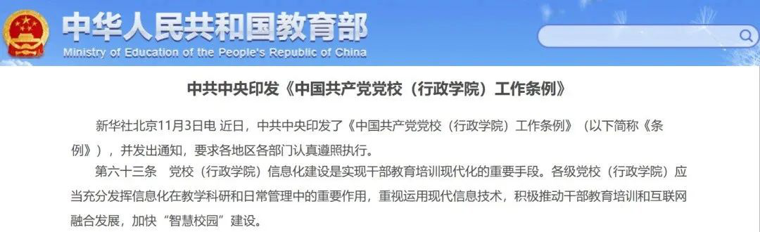 《2018-2022年全國干部教育培訓規(guī)劃》明確指出:干部教育培訓和互聯網融合發(fā)展。統(tǒng)籌整合網絡培訓資源,建設兼容、開放、共享、規(guī)范的全國干部網絡培訓體系。加強網絡培訓標準建設,2020年前形成較為完備的干部網絡培訓標準體系,2022年前實現各類各級干部網絡培訓平臺資源共建共享、數據互聯互通。積極探索適應信息化發(fā)展趨勢的網絡培訓有效方式,推行線上線下相結合的培訓模式。加快干部教育培訓機構“智慧校園”建設,完善干部教育培訓信息管理系統(tǒng),建立全國統(tǒng)一、分級管理的干部教育培訓電子檔案信息系統(tǒng)。