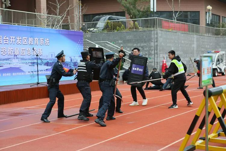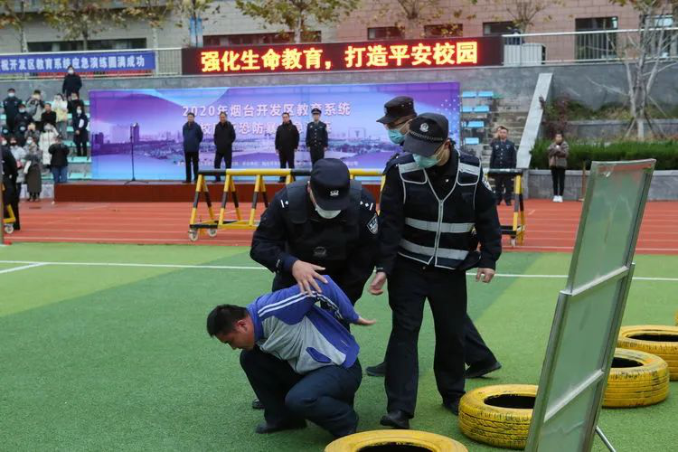 為全面加強校園安保工作,切實提升校園反恐防暴應急能力,11月19日下午,煙臺開發(fā)區(qū)教育系統(tǒng)在第六初級中學開展2020年校園反恐防暴應急演練,開發(fā)區(qū)相關管理部門領導、區(qū)內各中小學、幼兒園安全責任人受邀蒞臨現(xiàn)場。