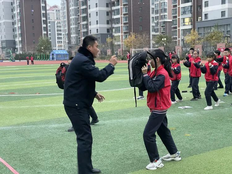演練前,學校安全辦提前做好安排部署,制定演練預案,并對學生進行書包防身術技能的教授和練習。