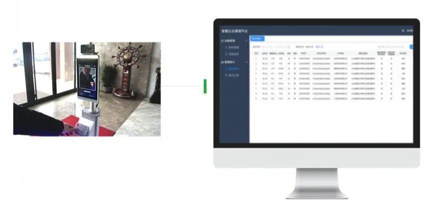 返鄉(xiāng)后,人員在健康碼識(shí)別認(rèn)證一體終端處刷身份證或健康碼,進(jìn)行身份核驗(yàn)并測(cè)溫。數(shù)據(jù)實(shí)時(shí)同步后臺(tái),由報(bào)表統(tǒng)一導(dǎo)出。