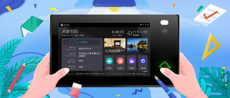 得益于自動(dòng)開關(guān)機(jī),班牌也能放假休息。還可設(shè)置休眠期,摸摸或刷卡就能喚醒~