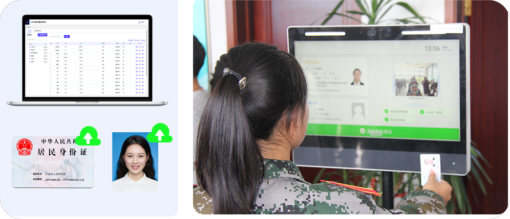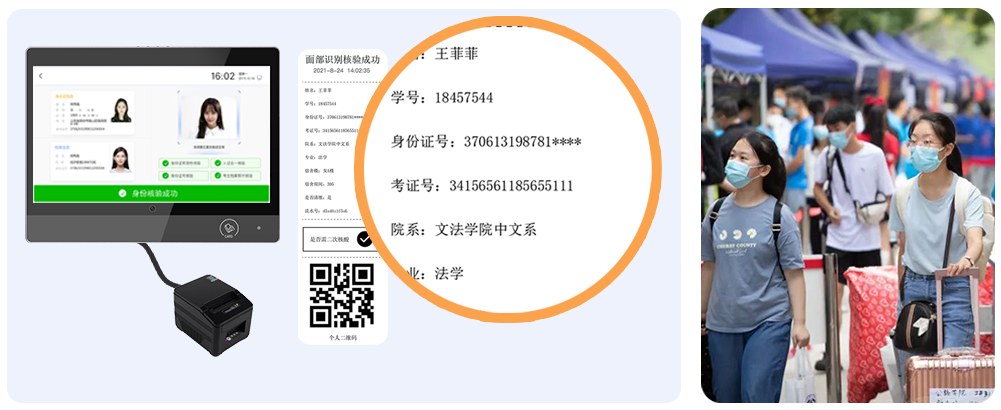 對接校方迎新系統(tǒng)后,系統(tǒng)可同步/導入學生身份證號、檔案照片等信息,新生報到時在智能終端處進行自助身份核驗。