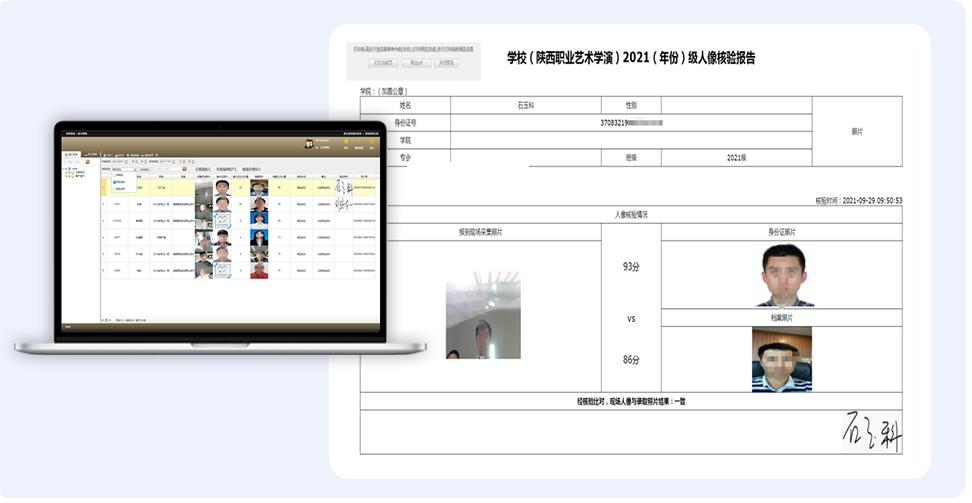 ● 人臉照片與檔案照片進行比對,再次驗證新生身份,并拍攝現(xiàn)場人臉照片。